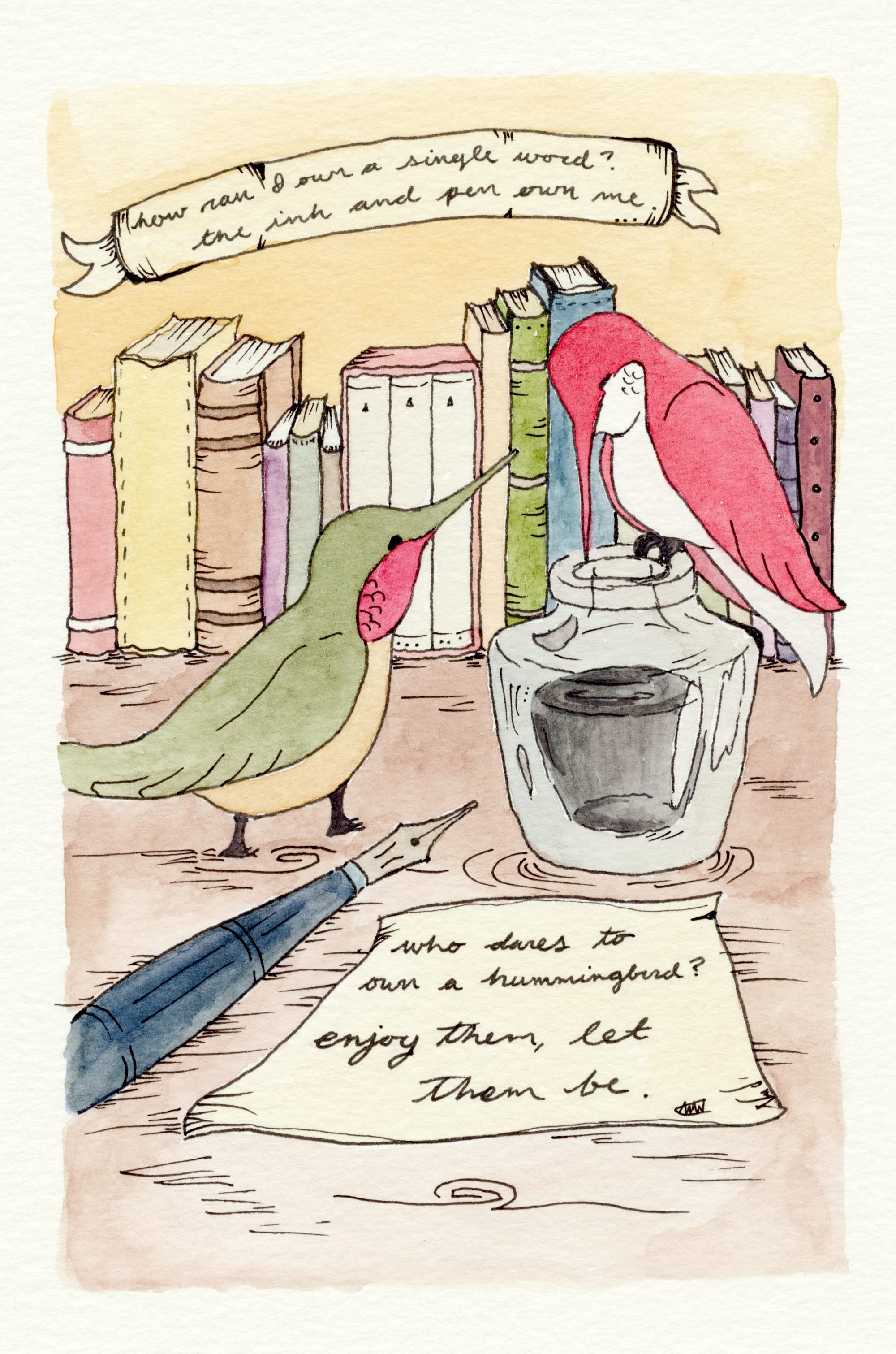 I enjoyed illustrating these in a pique of intense artistic focus, in a week, then did not pick up the brush again for a year.